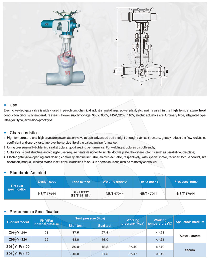 High Temperature And High Pressure Electric Welding Gate Valve