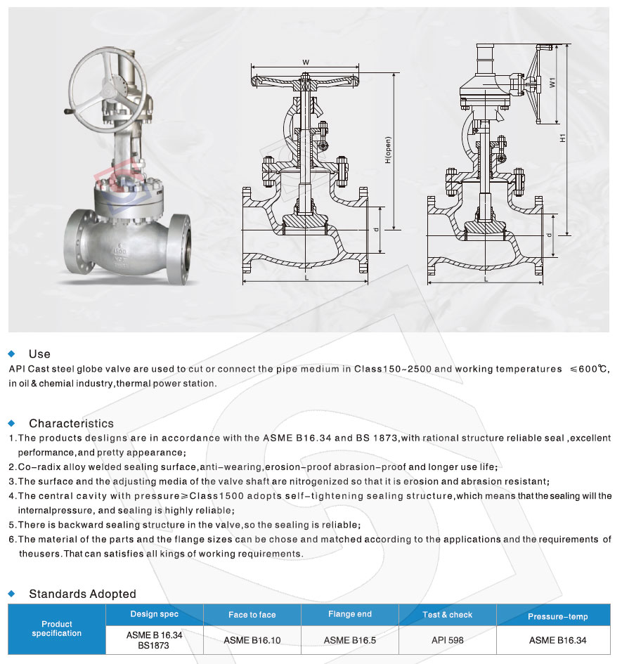 API cast steel globe valve